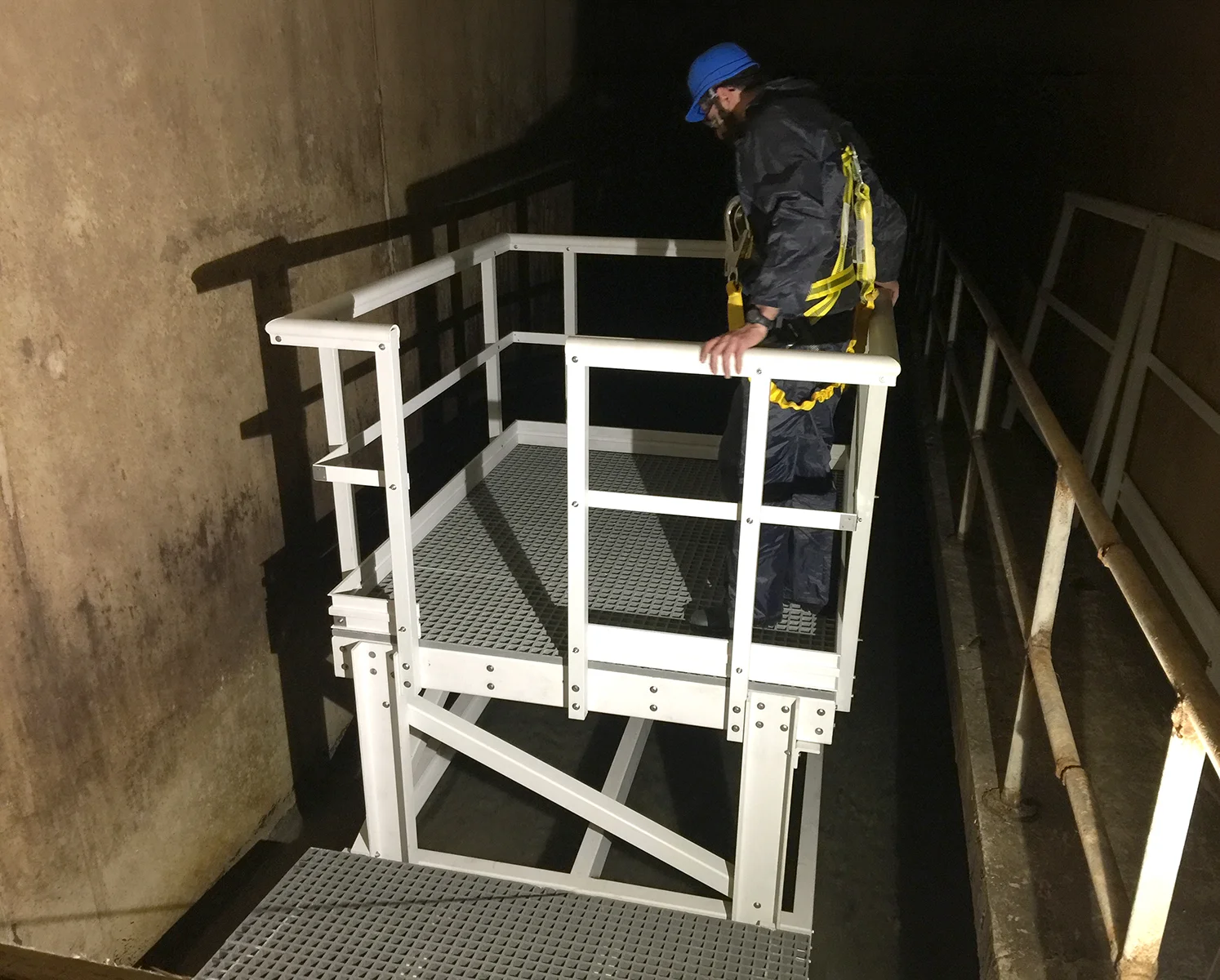 As plataformas em PRFV são produzidas a partir de perfis pultrudidos e pisos em gradil ou tampa, permitindo a criação de soluções robustas, leves e altamente resistentes à corrosão. A sua composição modular facilita a adaptação a diferentes configurações e exigências técnicas.